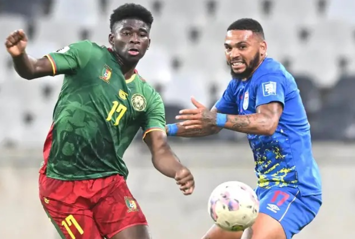 Les Lions Indomptables n’ont pas tardé à afficher leur supériorité. Dès la 6e minute, Bryan Mbeumo, très inspiré sur son côté droit, provoquait l’ouverture du score sur un centre dévié contre son camp par Gamedze (1-0). Dominateurs, les Camerounais se montraient toutefois parfois trop relâchés, laissant filer Figuareido en contre, heureusement stoppé par le retour de Boyomo.