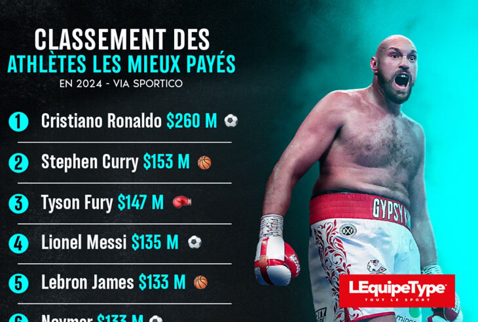 Boxe – 6 boxeurs dans le top 100 des athlètes les mieux payés en 2024